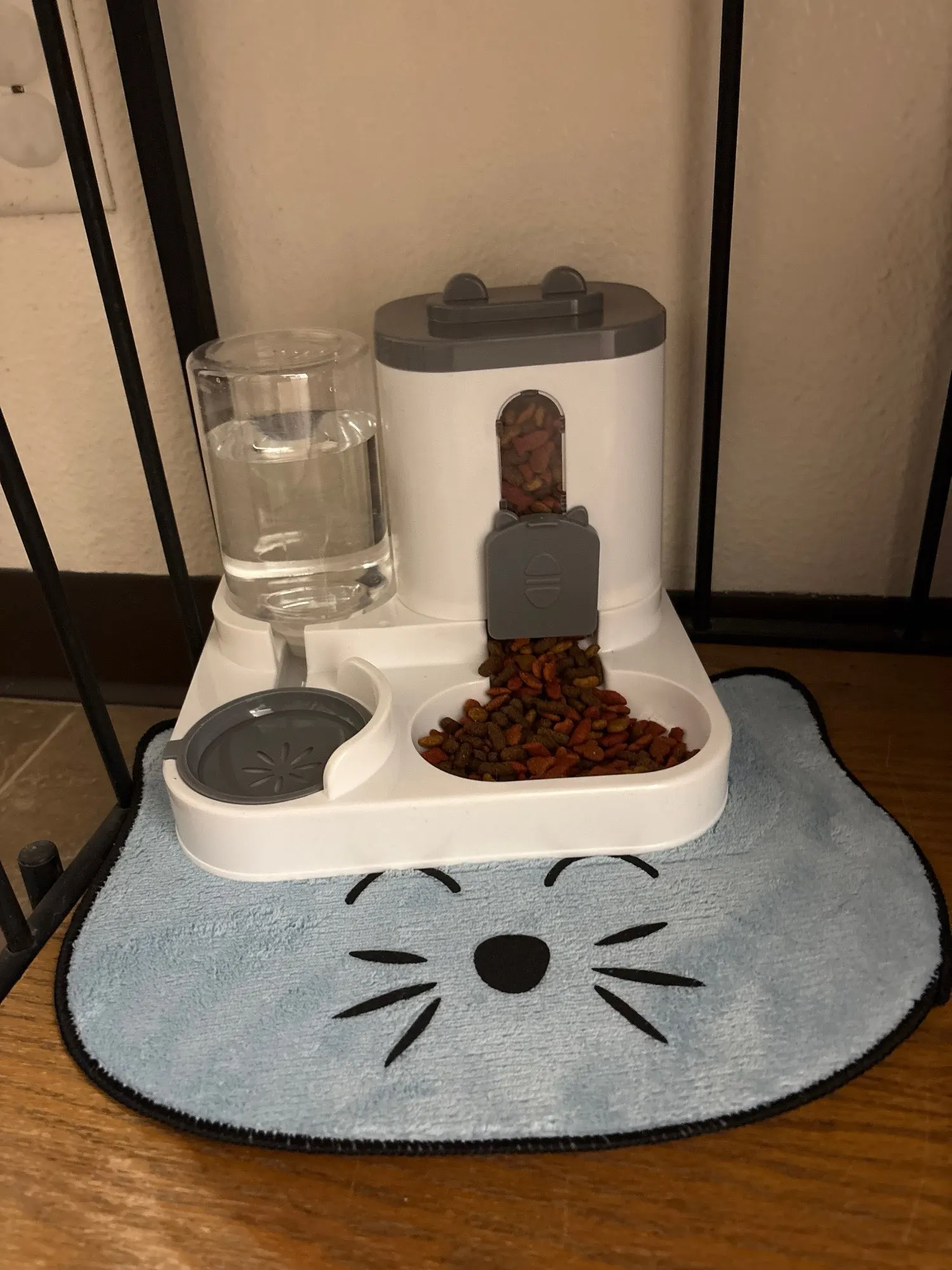 Small in size compared to a regular cat bowl. You have to adjust the food portion yourself by opening the flap, which is inconvenient while you're at work. I thought everything would be automatic. The structure looks fragile. In the advertisement and photos, everything was much more interesting. I'll have to buy another one for the second cat.