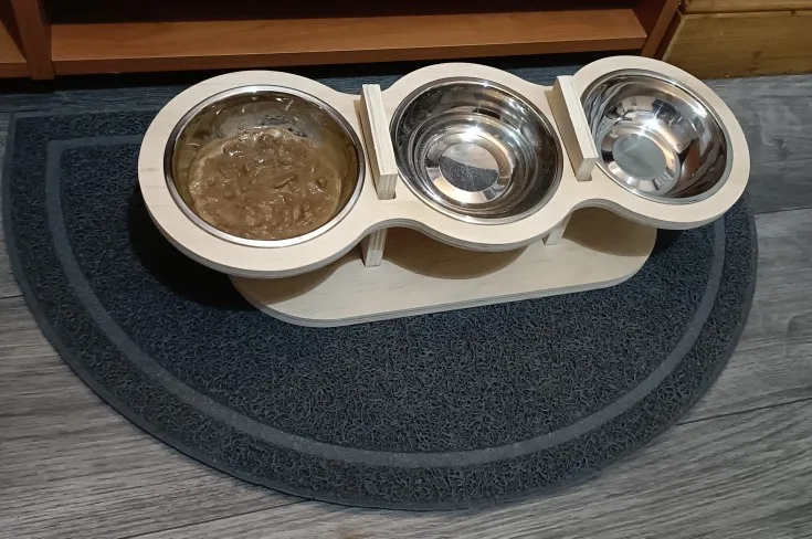 Raised Cat Feeder 3 Bowls in 1 Feeding & Watering Supplies 15° Raised Puppy 3 Stainless Steel Bowls Wood Stand Cats Accessories